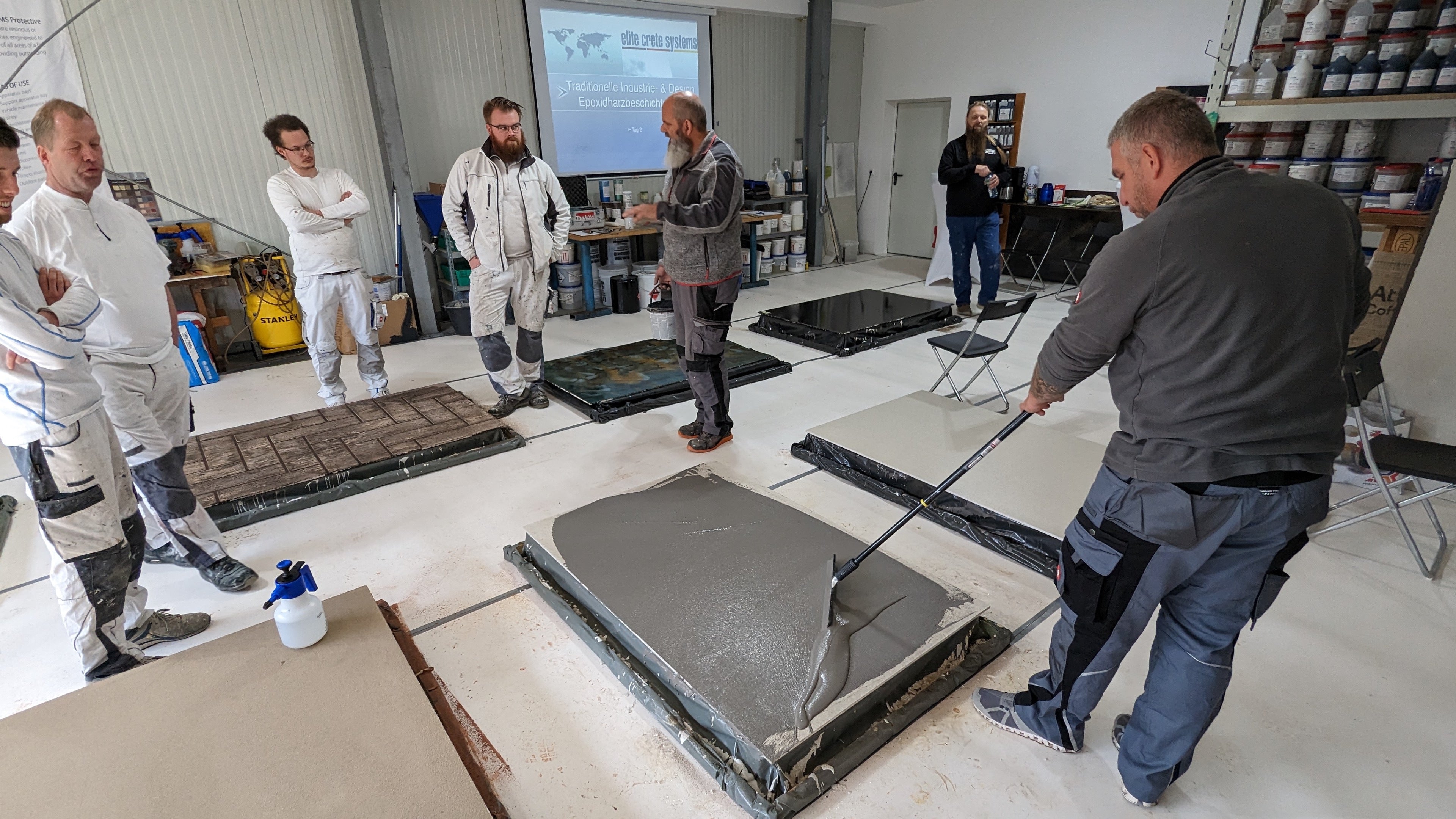 Du möchtest Dich in Deinem Handwerk weiterbilden oder suchst nach neuen Möglichkeiten, Deine Dienstleistungen zu erweitern? Unser Workshop bietet Dir als Handwerker die Chance, professionell mit Epoxidharz- und Mikrozementsystemen zu arbeiten. Lerne die Techniken, um fugenlose Böden und Beschichtungen in Wohn-, Gewerbe- und Industrieprojekten perfekt umzusetzen. Egal ob Terrasse, Treppen oder Innenräume – wir zeigen Dir Schritt für Schritt, wie Du mit den richtigen Werkzeugen und Materialien überzeugende Ergebnisse erzielst.