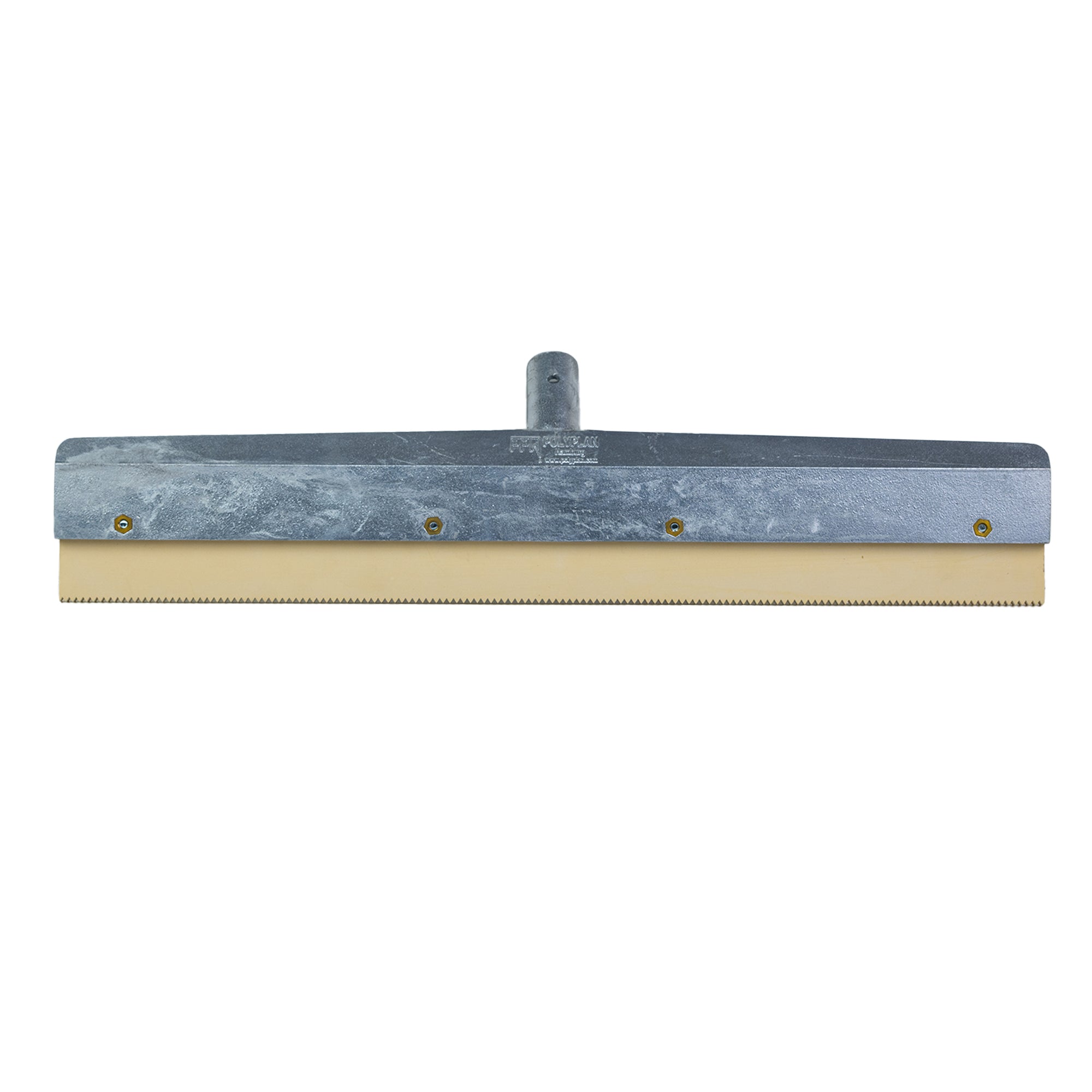 Er hat eine Aufnahme von 580 mm Länge, und 4 Flügelschrauben mit einer Klemmschiene und den passenden Gummi-Rakel mit 1 - 3 mm Zahnung.